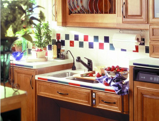 - For increased workspace, the sink can be offset in a 48" counter section