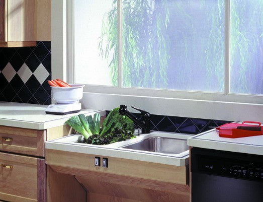 The ability to raise and lower the height of your sink isn’t just convenient, it’ll make you excited every time you use it. The touch of a button raises and lowers your sink height. At its lower positions the height is ideal for seated use or wheelchair heights. Raised to its maximum, it matches the counter height of standard base cabinets.